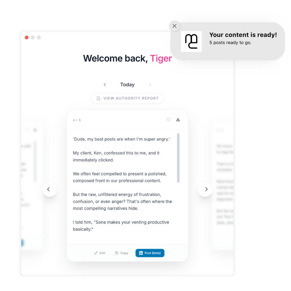 Right now, it just outputs content designed for engagement & credibility on LinkedIn. But who am I to deny your free will - post them wherever.Mac only?